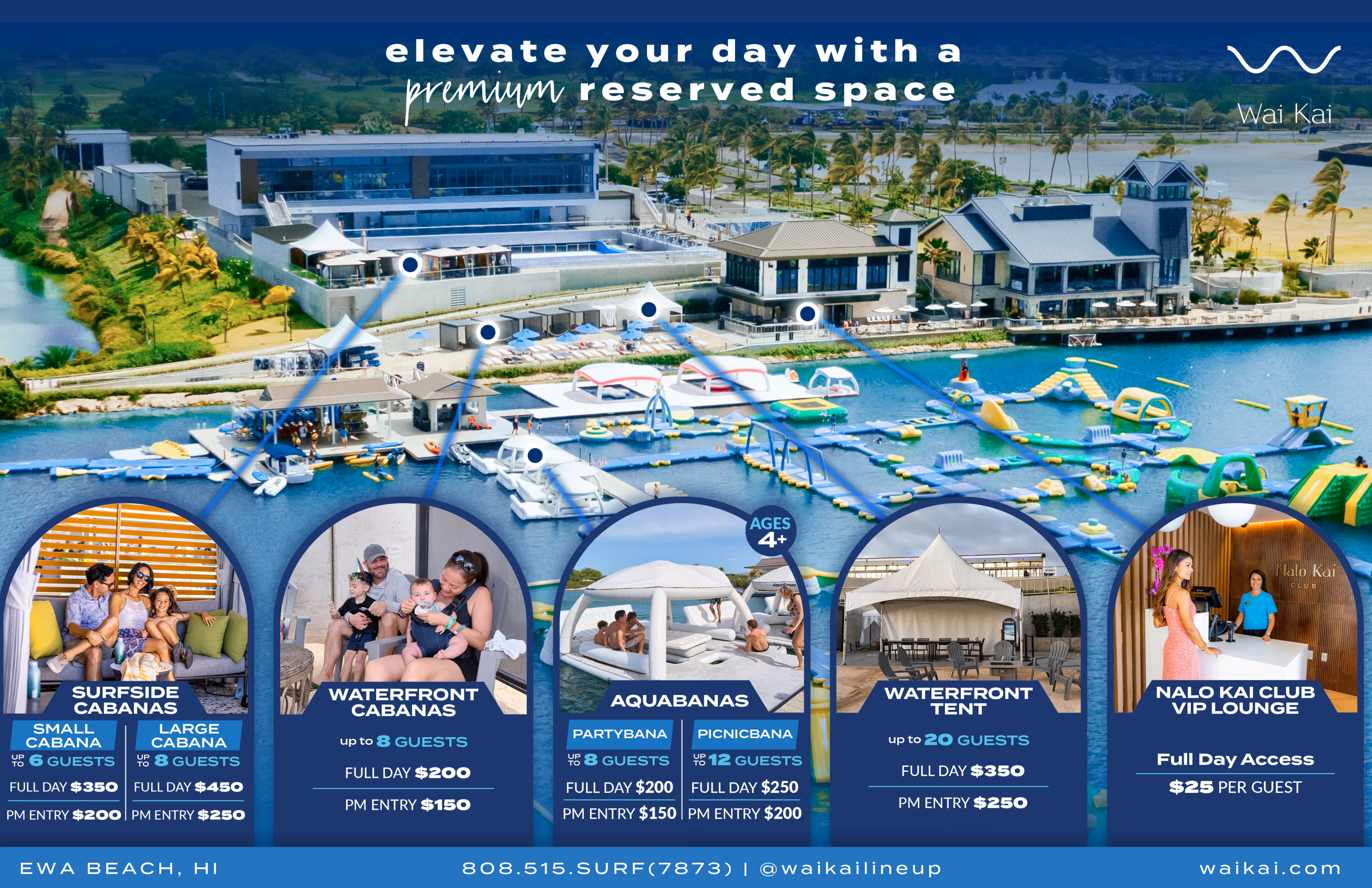 The LineUp at Wai Kai offer a variety of cabana and lounging options to enhance your visit. Whether you're seeking a relaxing retreat or a base for water activities, Wai Kai provides several choices to suit your preferences.