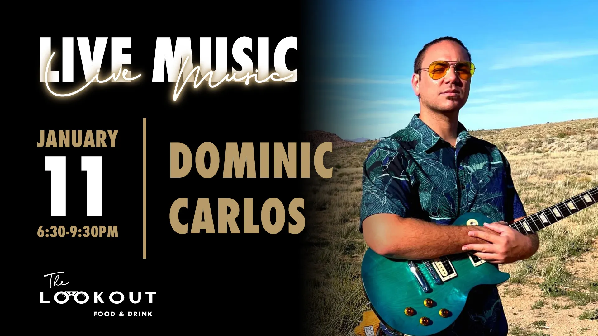 Enjoy LIVE music by Dominic Carlos at The LookOut while enjoying ono food and delicious cocktails! Come early for Pau Hana grindz from 4-6pm!