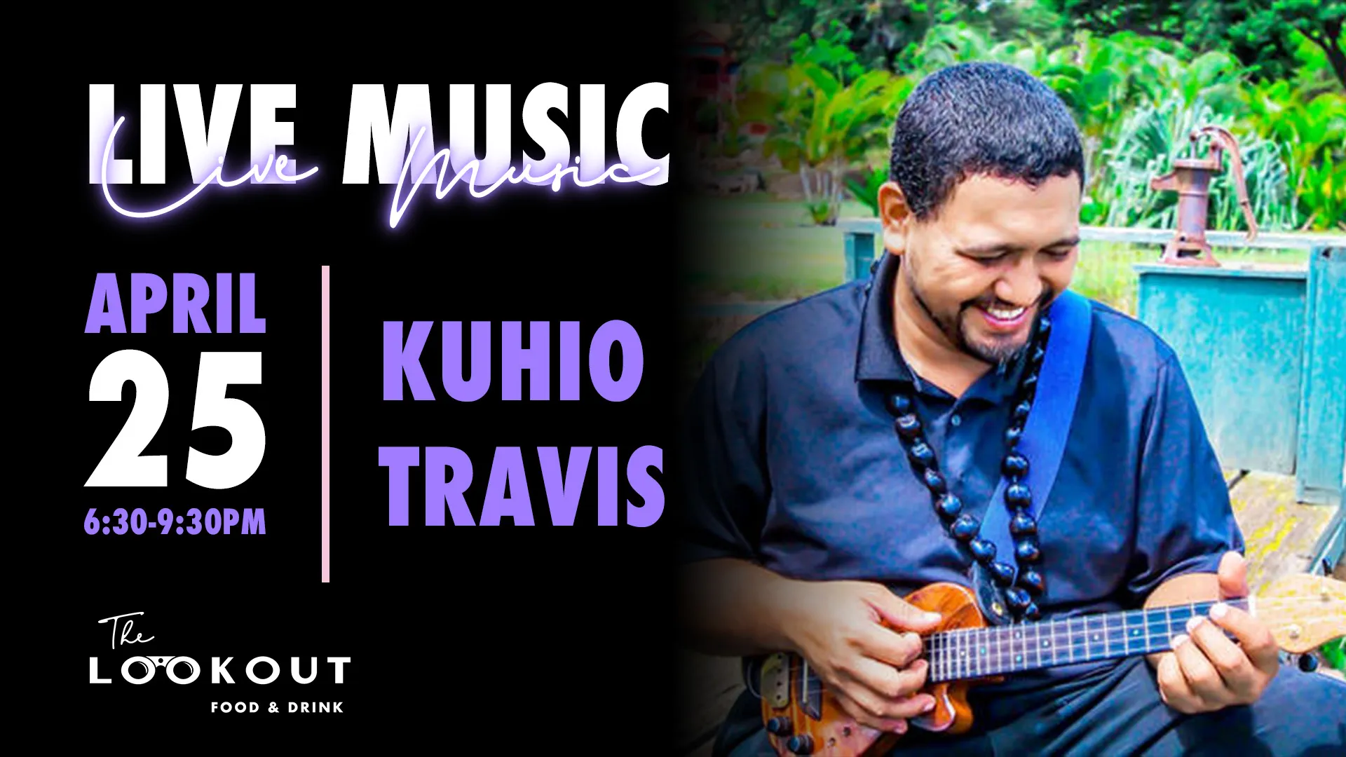 Enjoy LIVE music by Kuhio Travis at The LookOut while enjoying ono food and delicious cocktails! Come early for Pau Hana grindz from 4-6pm!