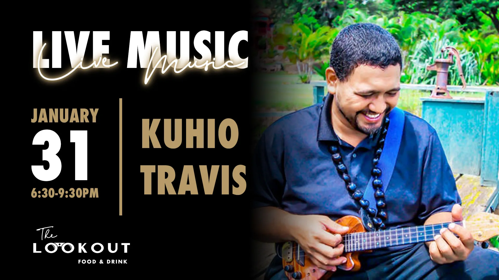Enjoy LIVE music by Kuhio Travis at The LookOut while enjoying ono food and delicious cocktails! Come early for Pau Hana grindz from 4-6pm!